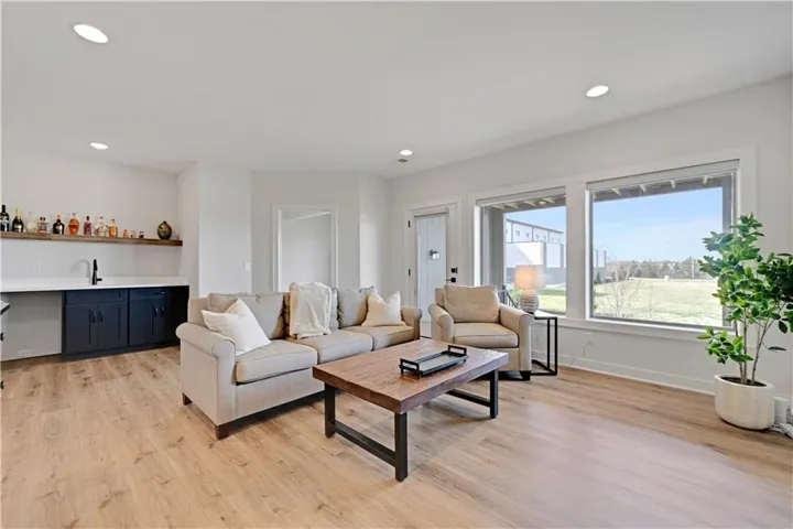 Perfect location, nearly brand new home, finishing touches already done for you! This reverse 1.5 story villa, located in Crestwood Village – a maintenance provided community – features an open concept floor plan. This stunning home has tons of natural light coming through the walls of windows in the great room with fireplace. Warm, wide-plank hardwood floors throughout the great room, dining area, kitchen and mud room. Enjoy cooking in the gorgeous kitchen featuring a center island, custom cabinets, quartz countertops and stainless appliances. You will FALL IN LOVE with the huge, L-shaped, walk-in pantry (including a counter top to host a coffee bar/air fryer) and so much accessible kitchen storage. The private owner’s suite includes an ensuite with double vanities, quartz countertops, spacious walk in shower, and a gigantic walk in closet featuring 3-tier/off season storage. Second bedroom/study on the first floor with walk in closet conveniently located adjacent to a full bath. Take the stunning, U-shaped staircase down to the finished, walkout basement, LVP floor with wet bar where you can entertain and enjoy watching the game. Two more bedrooms and full bath are perfect for guests! Abundant storage in the unfinished area of the basement. Nice finishing touch – painted floors in the unfinished storage area. Sellers have installed high-end window treatments that will remain with the home, along with fridge, washer and dryer. Come by to see this beautiful community in a fabulous location. Close to shopping, restaurants, grocery stores, entertainment, medical facilities and walking trail. Enjoy maintenance provided living for $267/month – included is lawn maintenance, snow removal, exterior paint and more! Vibrant community. Cascading views. Exceptional, well-manicured landscaping. Fences allowed at Crestwood Village!