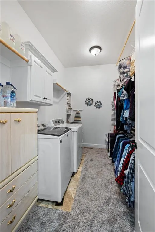 The main-level primary suite adds to the convenience, featuring a walk-in shower with dual heads, double vanities, and a spacious walk-in closet with room for a washer and dryer—making true main-level living possible.