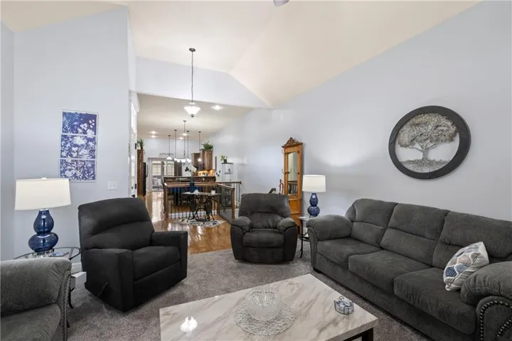 Inside, the main level flows effortlessly with vaulted ceilings and a kitchen built for real use—hardwood floors, under-cabinet lighting, double ovens, and a walk-in pantry—all opening directly to a screened-in porch for low-maintenance outdoor living you can enjoy without the hassle.