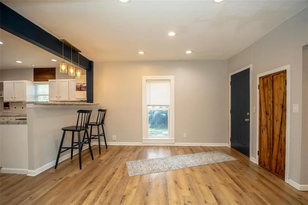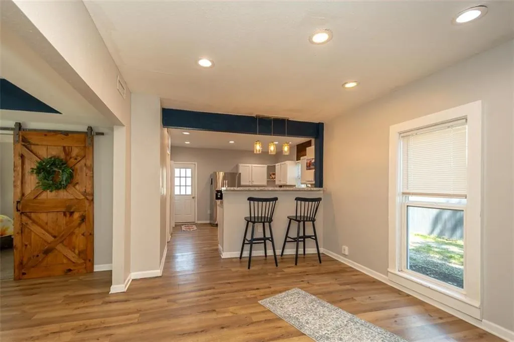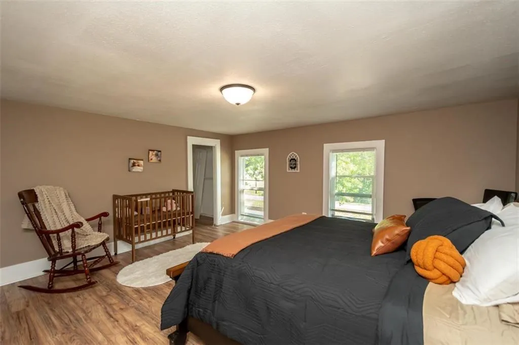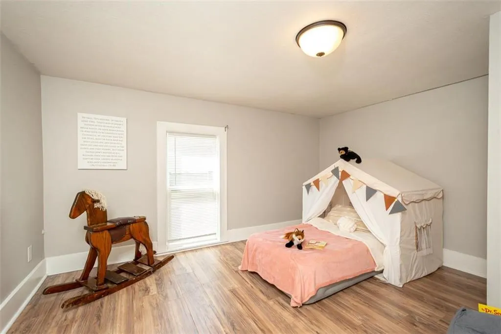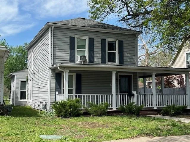 OPEN HOUSE – Sunday, May 3rd, 1:00 – 3:00 p.m. Looking for a large home close to downtown Ottawa with shopping, restaurants and America’s oldest running movie theater; one block from City Park with the new Splash Pad and play ground, and the bike trail right outside your front door? This lovely family home has one of a kind features you will love with all the room you need! An extra space on the first floor could be used for a breakfast, game or office area. The extra large upstairs bedroom could be a primary suite with room for a nursery or accommodate multiple children’s beds. There is a first floor bedroom with it’s own full en suite bathroom. Two eating areas: a formal dining room as well as a breakfast table area. Open concept first floor, sliding barn door, barn door pantry under the stairs. Unique, one-of-a kind architectural wood design on the stairs. There is a lovely, newly painted, wrap-around front porch to extend your living space, too. The home does have a storm cellar with a sump pump. The previous tenants had an above ground pool in the back yard, the fence can stay or seller will have removed if buyer wishes. New in April ’26- stove, hot water heater, lazy suzan, interior paint, porch paint, gutters cleaned, carpets cleaned.