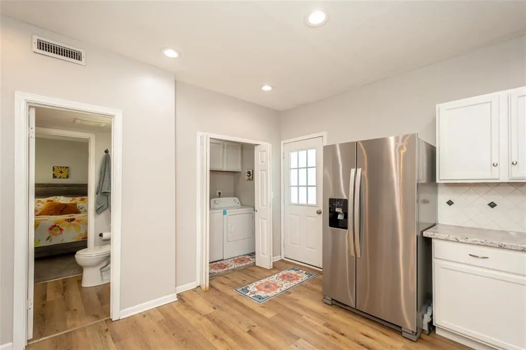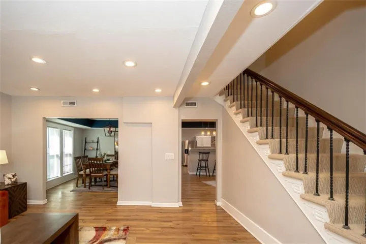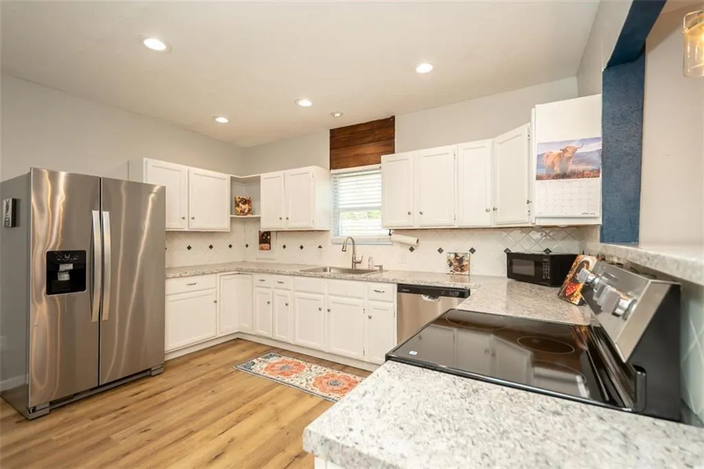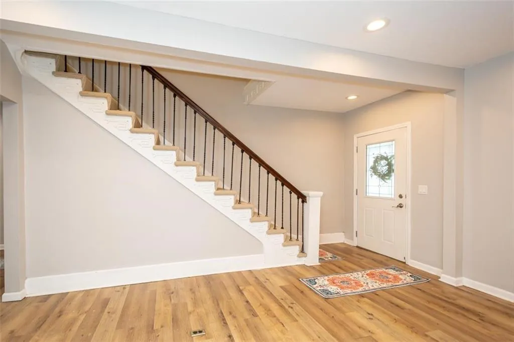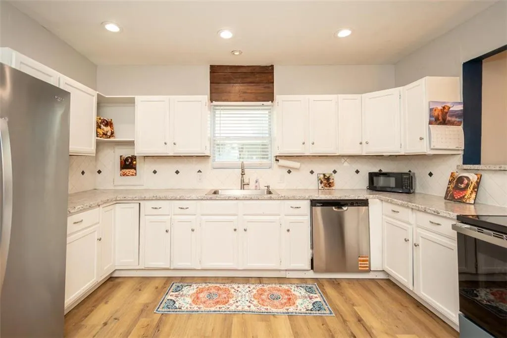 OPEN HOUSE – Sunday, May 3rd, 1:00 – 3:00 p.m. Looking for a large home close to downtown Ottawa with shopping, restaurants and America’s oldest running movie theater; one block from City Park with the new Splash Pad and play ground, and the bike trail right outside your front door? This lovely family home has one of a kind features you will love with all the room you need! An extra space on the first floor could be used for a breakfast, game or office area. The extra large upstairs bedroom could be a primary suite with room for a nursery or accommodate multiple children’s beds. There is a first floor bedroom with it’s own full en suite bathroom. Two eating areas: a formal dining room as well as a breakfast table area. Open concept first floor, sliding barn door, barn door pantry under the stairs. Unique, one-of-a kind architectural wood design on the stairs. There is a lovely, newly painted, wrap-around front porch to extend your living space, too. The home does have a storm cellar with a sump pump. The previous tenants had an above ground pool in the back yard, the fence can stay or seller will have removed if buyer wishes. New in April ’26- stove, hot water heater, lazy suzan, interior paint, porch paint, gutters cleaned, carpets cleaned.