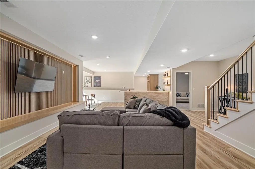 Move-in ready Bryant-Ratliff “Lyle” Reverse 1½-story offering a spacious, functional layout with stylish finishes throughout. The private owner’s suite features a luxurious bath, large walk-in closet, and convenient laundry access. The redesigned kitchen includes an oversized pantry, large island, and abundant cabinetry, opening seamlessly to the dining area and great room—perfect for entertaining. A secondary bedroom with private bath is located off the main hall. Enjoy the oversized screened-in covered deck with serene views of the Creekmoor Championship Golf Course. Home is backing to the 15th hole giving you front row seating! The finished lower level offers two additional bedrooms, two baths, and a spacious family room that walks out to the backyard overlooking the course. Includes access to Creekmoor amenities: golf, lake, pools, sports courts, fitness center, trails, clubhouse, and dining at The Tavern on the Moor.