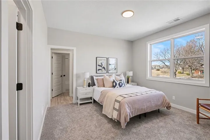 MODEL HOME. NOT FOR SALE AT THIS TIME. Welcome to the Ryder Expanded by Lamendola Custom Homes, proudly situated on Lot 51. This stunning 1.5-story residence features 5 bedrooms and 3.5 bathrooms, thoughtfully designed for comfort, style, and functionality. The main level offers a spacious primary suite complete with a luxurious ensuite bathroom, an additional bedroom that can easily serve as a home office, a well-appointed laundry room with a sink and ample storage, and a beautifully designed kitchen with a generous walk-in pantry. The great room includes a stylish dry bar with floating shelves—perfect for effortless entertaining. Upstairs, a versatile loft provides additional living space, complemented by two bedrooms connected by a Jack-and-Jill bathroom, plus a third bedroom with its own private ensuite. With exceptional craftsmanship and an inviting layout, this home offers everything you need and more—a truly wonderful place to call home. Taxes are estimated. Close to schools, highways, shops and restaurants! Please note: students in this subdivision will attend Blue Valley’s newest middle school starting in the fall of 2026: Wolf Springs Middle School