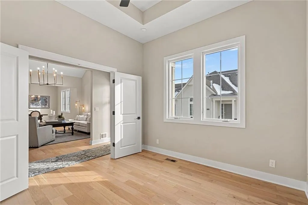 Highly anticipated Dusty Rhodes Homes maintenance provided Luxury Villas!. Quality construction with high level finishes throughout. UPGRADED UNIT W/10′ CEILINGS. 3bd, 3bth Reverse 1.5 story with 2 bedrooms on the main level. Finishes include custom cabinets, quartz countertops. Designer series trim package. Owners Suite features vaulted ceiling, walk in shower and double vanities, Walk in closets. Lower Level Dry Bar w/Beverage Chiller. Maintenance provided living at its finest with ample services included for $357.50 per month. $750 One Time initiation fee. Square footage and taxes are estimated. Price includes some upgraded finishes including additional base cabinets in kitchen.