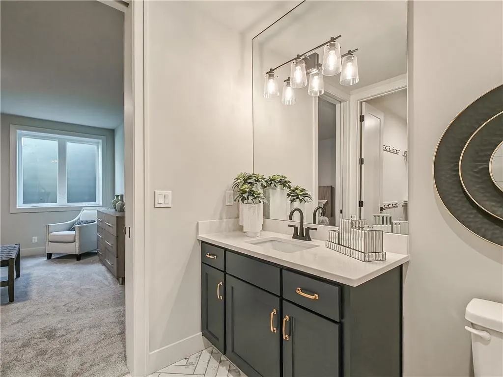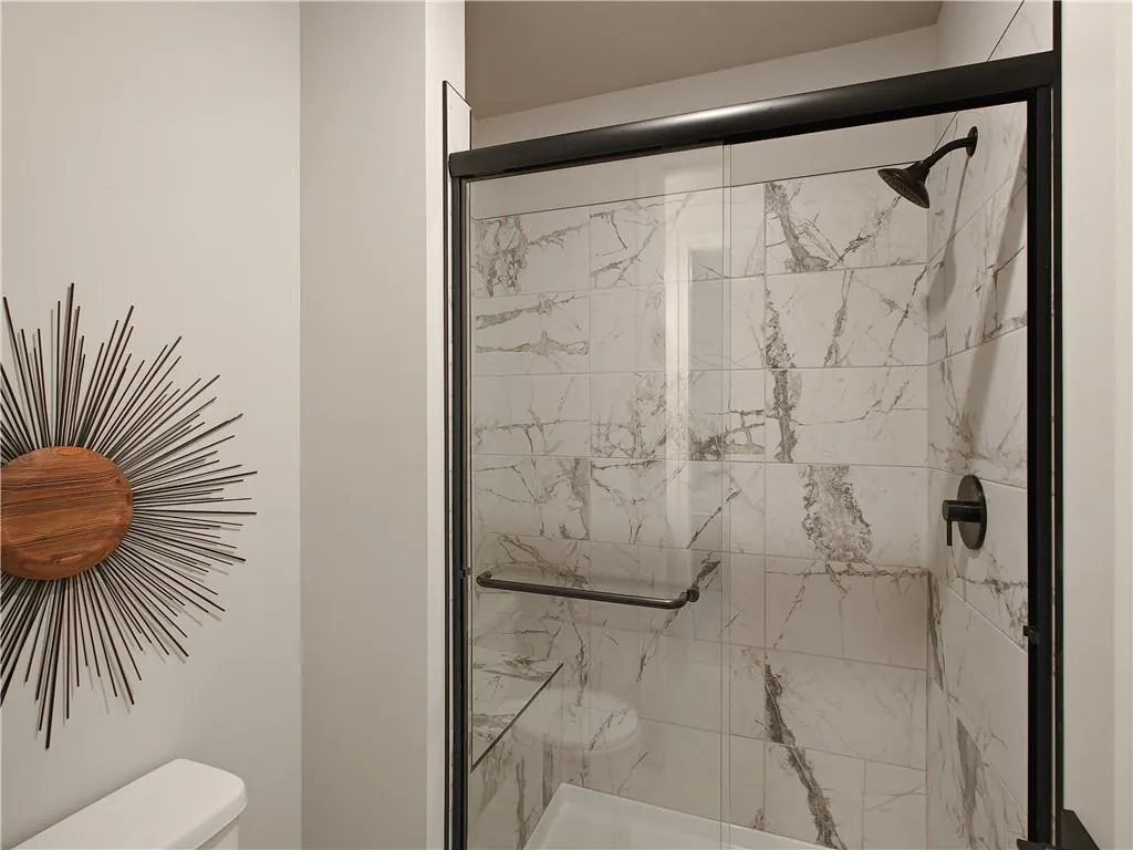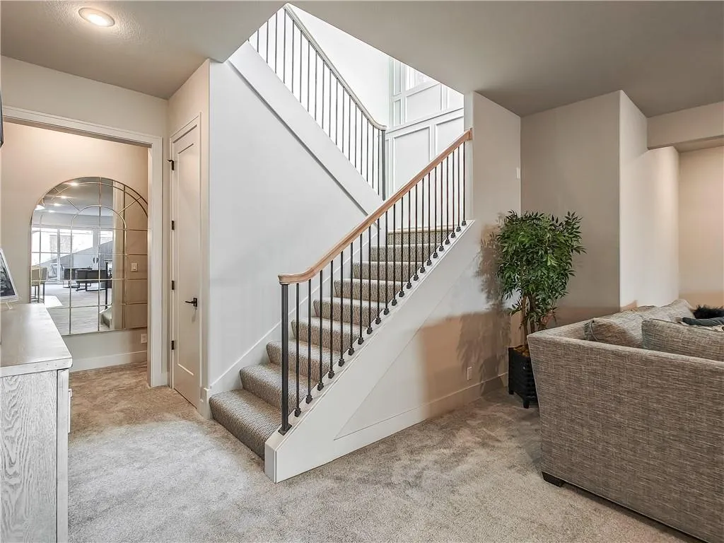 MODEL HOME – NOT FOR SALE. lot 178, Enticing Don Julian award winning Courtland Reverse plan under construction. Located in the Estates of Terrybrook Farms, lot 178. Incredible floor plan; great for the entertainer in you! Step into the entry where you are greeted with the bright office with adjacent exterior Courtyard filled with natural light. Beautiful kitchen with double sized island great for family get togethers or entertaining friends. Open great room opens to another patio for relaxing outdoors. The Primary Suite is gently tucked in the corner of the home for privacy and solitude. Towards the hall off the garage is a second bedroom with nice closet and bath. Overnight guests will love it! There is also a separate half bath!!The lower level features a dedicated bar, large open space for catching the latest movie or playing a game of pool or poker. Two additional bedrooms and bath finished off the living space. Step outside to the walk up walk out with great privacy. Stairs lead you to the upper level side of the home.