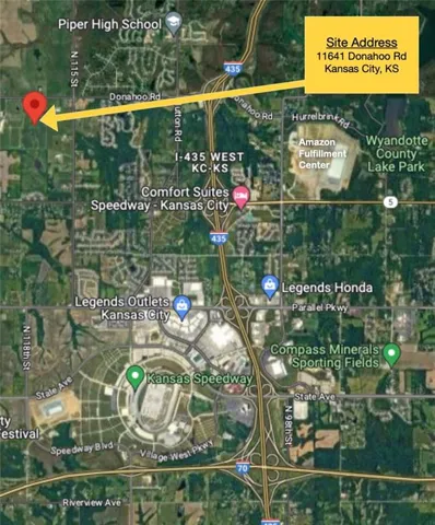 High visibility and easy access. Pristine land is ideally located for residential developers. Prime development land running between I-435 and K-7 with access off Donahoo Road exit. Master planned as Residential and Neighborhood Commercial. A few miles from Village West and the Kansas Speedway/KC Sporting venues. Minutes from WyCo Lake and Amazon Fulfillment Center.