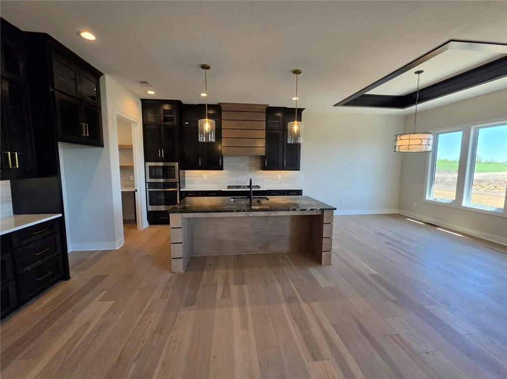 Pauli Homes brings their phenomenal “Riviera” plan to Johnson Counties newest maintenance provided community, Prairie Canyon! Conveniently located just west of K-7 off of College Blvd! This fabulous reverse 1.5 story backs east to greenspace with extended views! You can really feel the additional square footage in this beauty! This plan features an open great room/dining room/kitchen with spacious island, large walk-in pantry, fireplace & includes a versatile first floor guest room or den. Luxurious primary suite with large shower, soaking tub & walk-in closet. Each bedroom enjoys a private bath, 1/2 bath on each level also. Lower-level design offers expansive recreation, family & media space, wet bar plus 2 bedrooms & storm room in the storage area. Exceptional quality & value you’ve come to expect from from Pauli Homes in a signature Prime Development Co. Community!