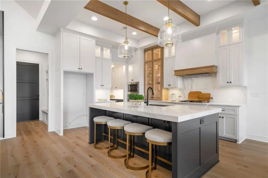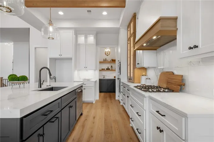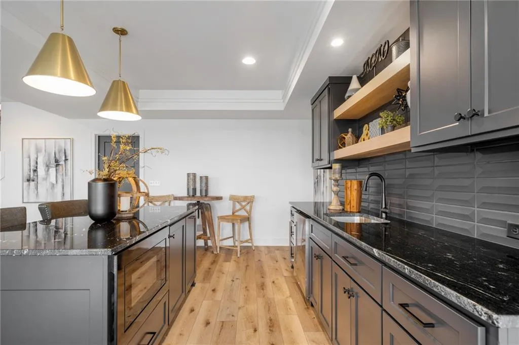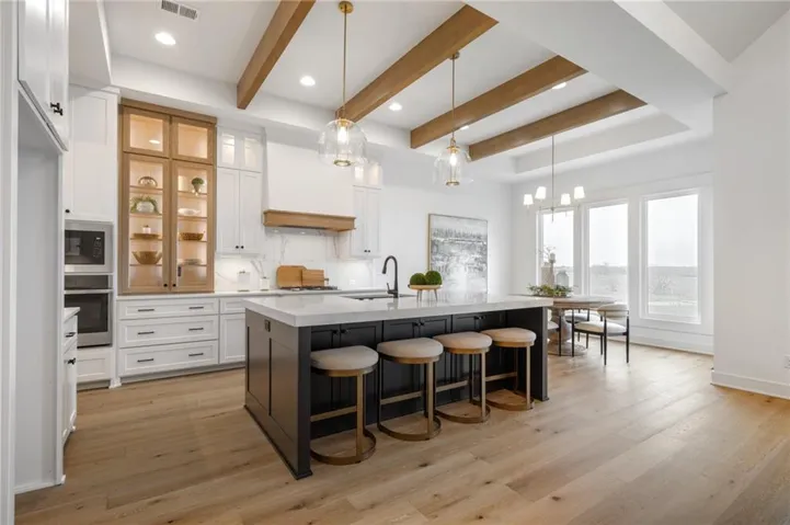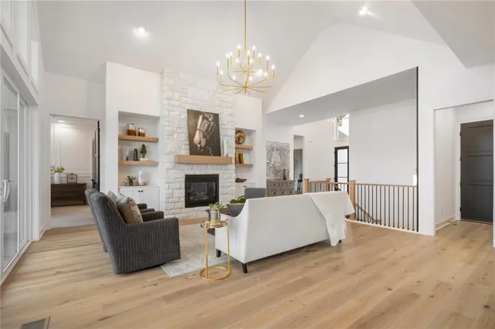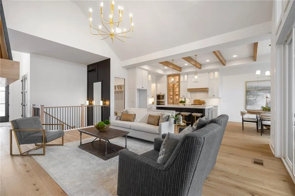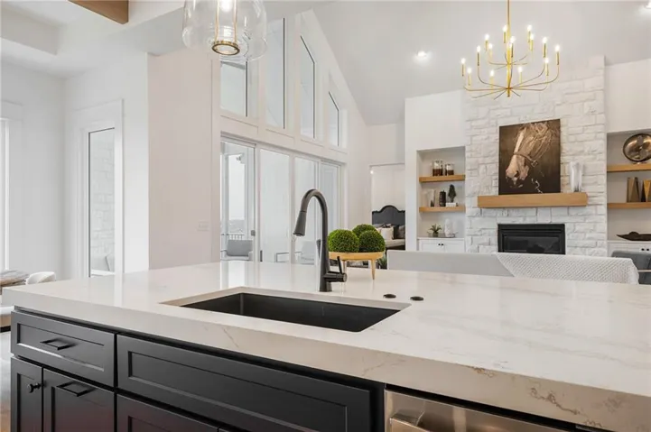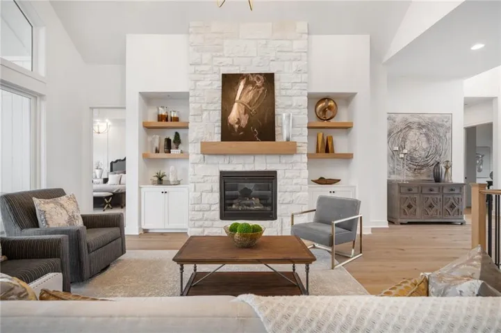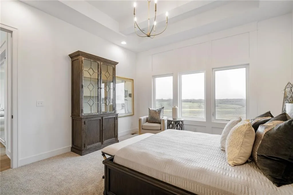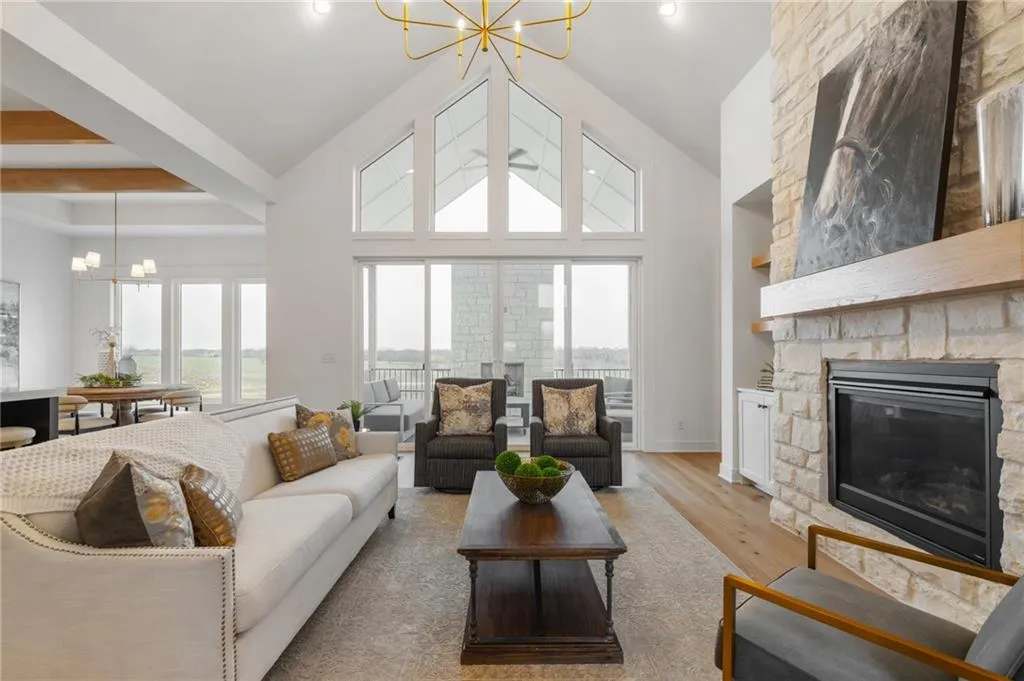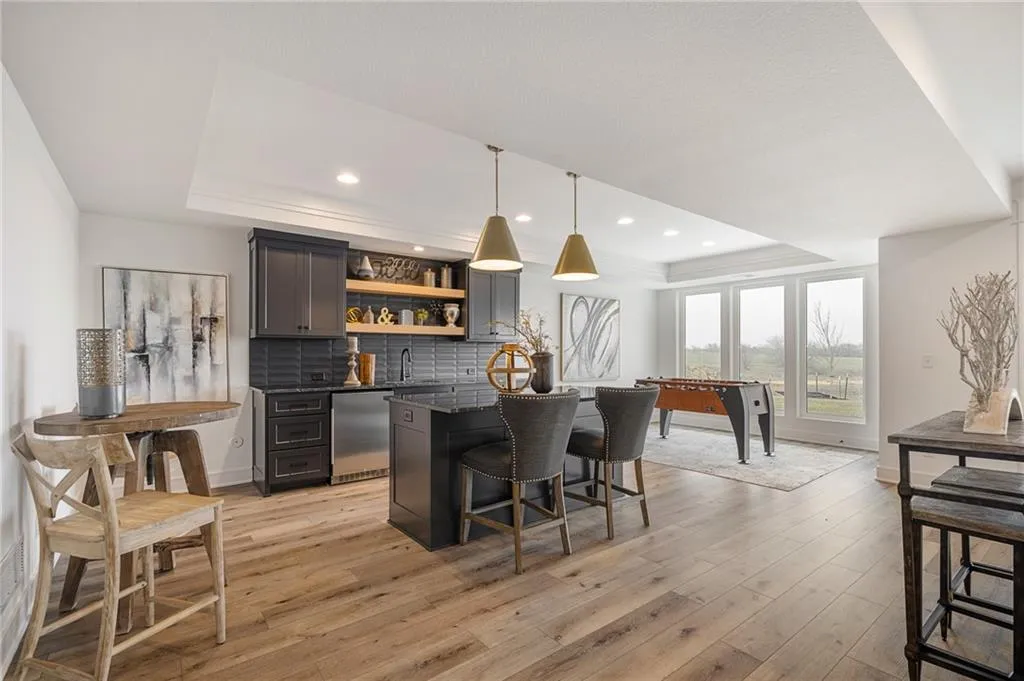 The Bayberry by JFE Homes, sits on a walkout lot with SE rear exposure backing to greenspace w/dramatic long vistas! From the moment you enter this home through grand double doors, the cathedral, vaulted living room ceiling and back wall of windows/doors make it feel so spacious, light and bright. The great room is cozy and inviting with a stone fireplace, built in cabinets with floating shelves above and designated lighting. Enjoy your time with friends and family in the beautifully designed kitchen featuring warm wood beams, quartz counters, gooseneck faucet, s/s appliances, under cab and cab lighting. Expansive butler’s pantry/coffee bar with more pantry storage on the side. Large owners suite with free standing tub, double bowl vanity, zero entry shower, and sizable closet with 3rd tier pull down supports. Laundry room with custom cabinets opens to the closet. Second bedroom or office on the main. Relax in the evenings and enjoy nature on the covered deck with gas fireplace. Don’t forget about the finished lower level. The u-shaped staircase, designer carpet, modern lighting and mirror bring out the allure of this home. Downstairs finished in LVP, you’ll find a spacious family room with TV area, game area, full bar & 2 additional bedrooms w/full bath. Lower level stubbed for an extra bathroom. Tons of storage space. Don’t miss out, this home won’t make it through the spring selling season. Come out and see the beautiful landscape of Prairie Canyon. Your time can be your own – all the yard work, mowing, trimming, weeding, edging, mulching, fertilizing, and snow removal for just $200 per month. Prairie Canyon is Johnson County’s newest maintenance provided community conveniently located just west of Hwy 7 on College Blvd. JFE delivers exceptional quality & this one backs south to greenspace – come out and take a look!
