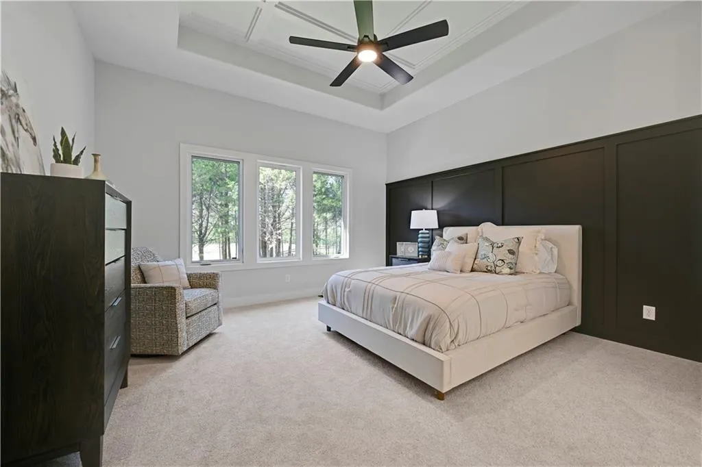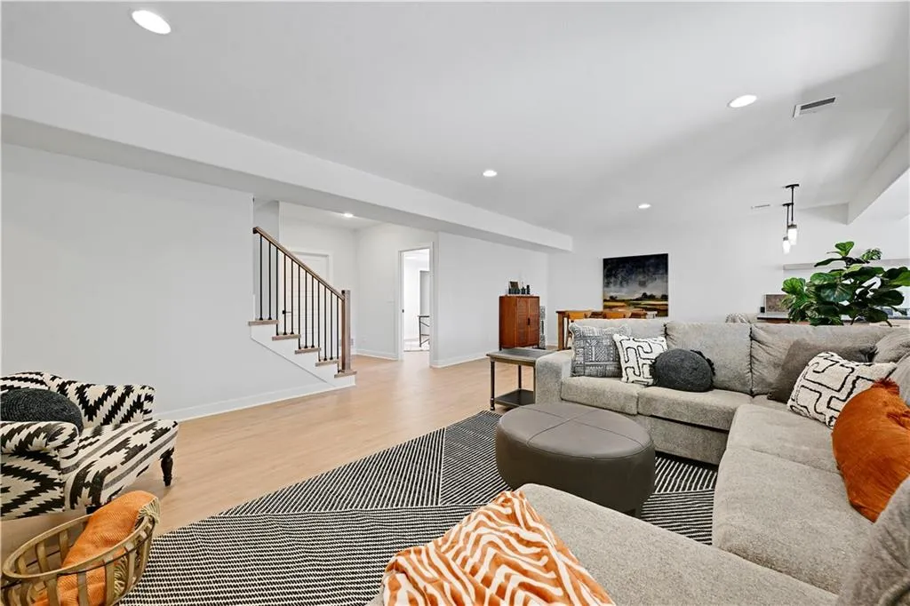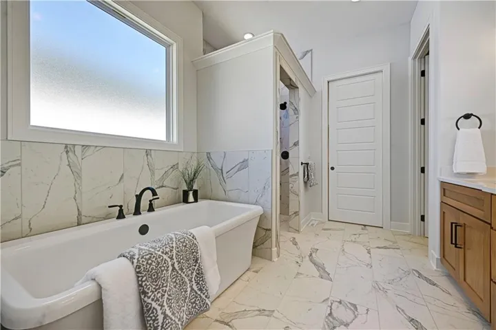The spa-like primary suite boasts a free-standing tub, oversized walk-in shower, double vanity, and generous walk-in closet. Conveniently, the laundry room is just off the primary closet to make laundry day a breeze. The finished walkout lower level offers even more space for entertaining, complete with a walk-up bar, TV area, sitting room, flex/bedroom, two additional bedrooms, and a full bath. Large windows bring in plenty of light and offer direct access to the backyard.
