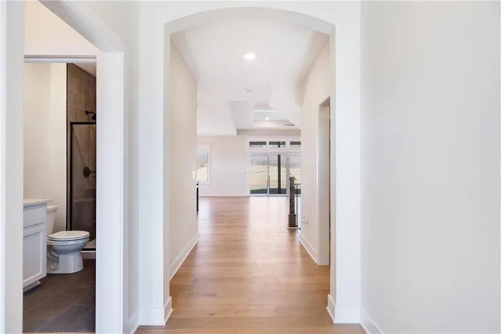 Welcome to this Stunning Modern 1.5 story Home beautifully designed. Featuring high-end finishes and an open floor plan that exudes elegance and comfort. This home boasts a striking curb appeal with a blend of stone and wood siding, a spacious 3-car garage, and a large driveway. Inside you will find an open-concept layout with vaulted ceilings, recessed lighting, and a coffered ceiling design that enhances the spaciousness of the home. Beautiful luxury LVP flooring flows throughout the main living spaces, creating a warm and inviting atmosphere. Equipped with a large center island, gorgeous countertops, custom cabinetry, stainless steel appliances, a stylish backsplash, and a walk-in pantry with ample storage space. The home offers spacious bedrooms with large windows that bring in natural light, high ceilings, and ceiling fans for added comfort. The primary suite features a tray ceiling, plush carpeting, and a serene backyard view. Luxurious bathrooms with modern fixtures, double vanities and beautifully tiled walk-in showers with glass enclosures, and a generous walk-in closet with custom shelving, providing ample storage and organization. A covered patio with access to a spacious backyard, perfect for entertaining or relaxing while enjoying the serene surroundings.