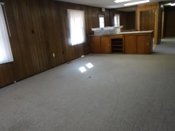Main Avenue, very visible, main floor offices, basement storage, road on 2 sides, side & rear parking, rear entrance/ramp. covered concrete front & back porches. (2) 1/2 baths. Front door has vinyl flooring, (2) service counters/doors & drawers. Most everything else has carpet on the floor. Bathrooms have vinyl. Lg. Offices 14′ x 26′, 10′ x 14′, 13′ x 16′, 11′ x 12′ with built in sink, 10′ x 12′, 14′ x 16′, 10′ x 15′, 8′ x 10′ entry. Wide back hall. Inside & outside entrance to basement. Drain at bottom of stairs in outside entrance. 30′ x 58′ basement with a room framed in. Armstrong Ultra Gas Furnace, 10 gallon electric water heater, 3 windows in bsmt. 200 amp service. Has been an Insurance Agency Office Space and the last business was Hospice. Ample parking, plenty of shaded green space. All brick. Could be anything as it is HIGH VISIBILITY. Owners would consider leasing the building. 1st floor has Anderson thermal windows. 7 year old roof