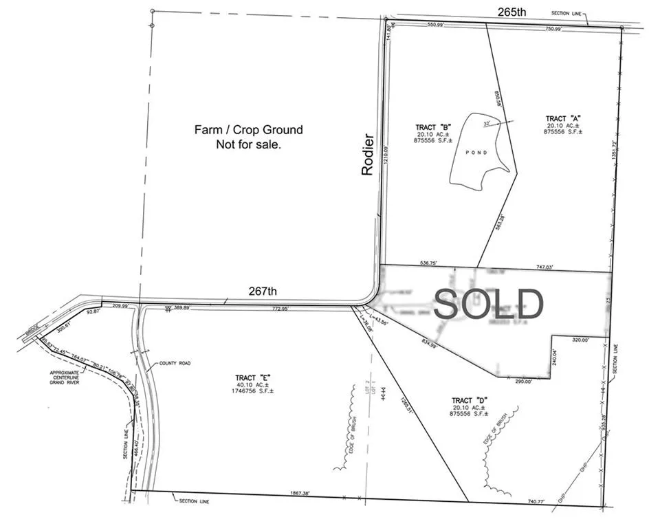 Sellers will not split into a smaller lot. Please make an appointment to view property. Preapproval or proof of funds MUST be provided in order for a showing to be approved. Do NOT drive/park/walk property without an approved appointment. Home on Lot C is not owned by sellers. Land is being farmed and approved hunters are on/off the property. The Sheriff’s Department will likely be called on trespassers. Taxes and lot size are estimates only. Restricted to stick built homes: no mobile/manufactured homes. Pre-Approved or Cash buyers only. Owners will not owner finance sale. See MLS for the all lots (2376398,2376682,2376686,2376692). Part of lots D & E are in the flood plain. Listing agent is one of the owners. S. Rodier Rd crosses into the property – it is not a through road. The county maintains a little over 1K foot of road from 269th to the pump station.